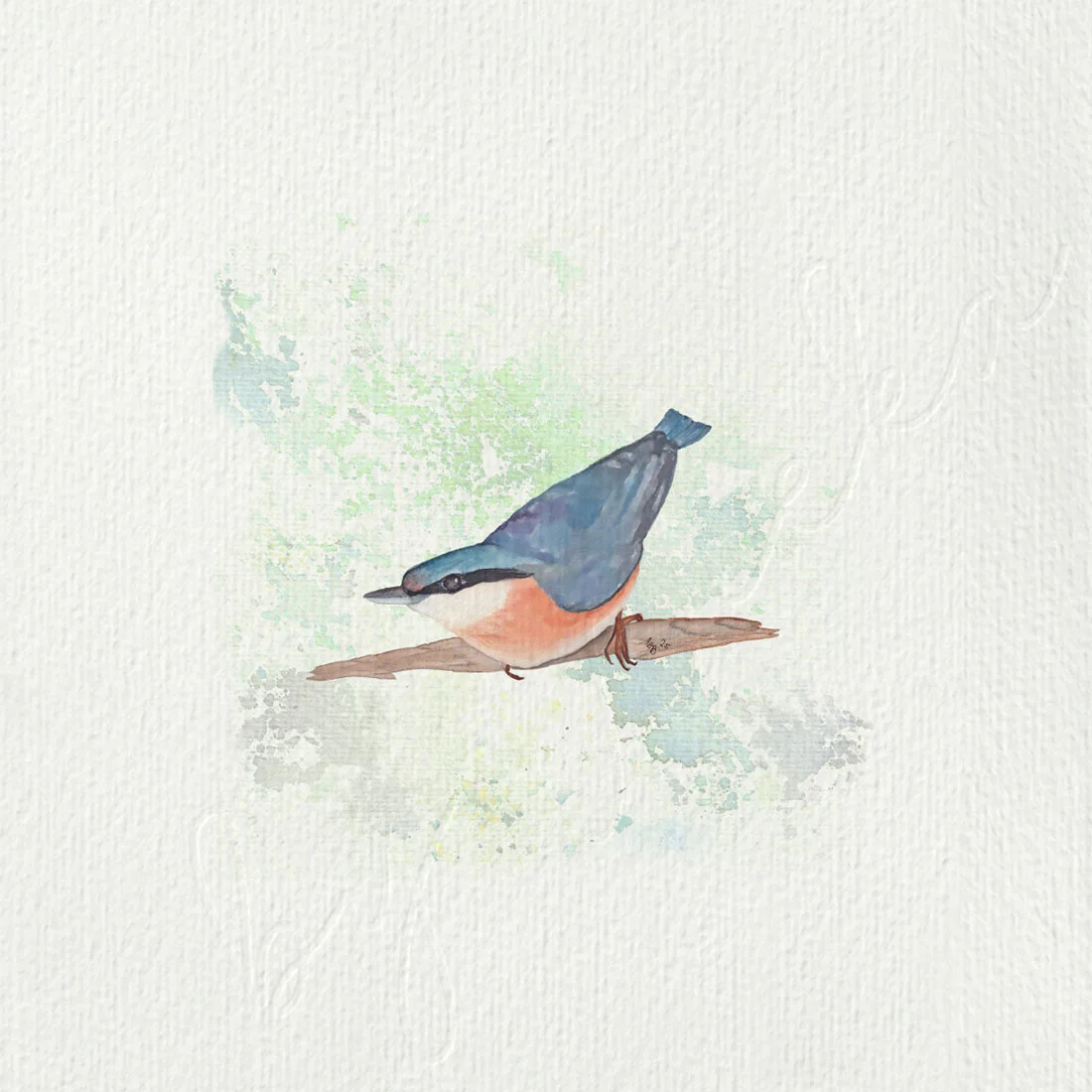 Rotkehlchen - Aquarell, Miniatur Kunstdruck auf Büttenpapier