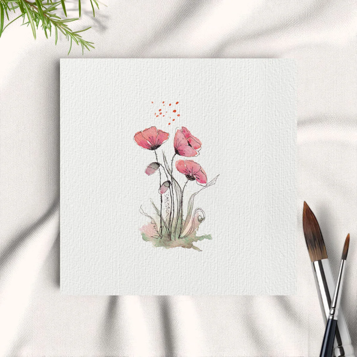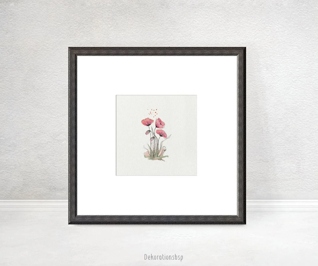 Mini-Aquarell - Kunstdruck im minimalistischen Stil Sommerblumen – Die Minibilder sind perfekt als Geschenk oder zum Selbstbehalten für Zuhause und Büro