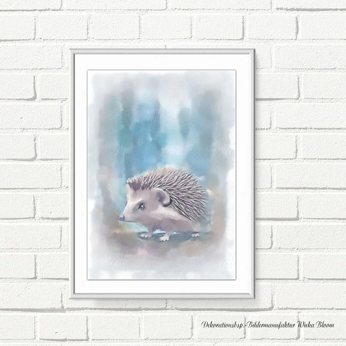 KLEINER IGEL IM WALD, Wandbild Poster für Kids, Print nach Aquarell