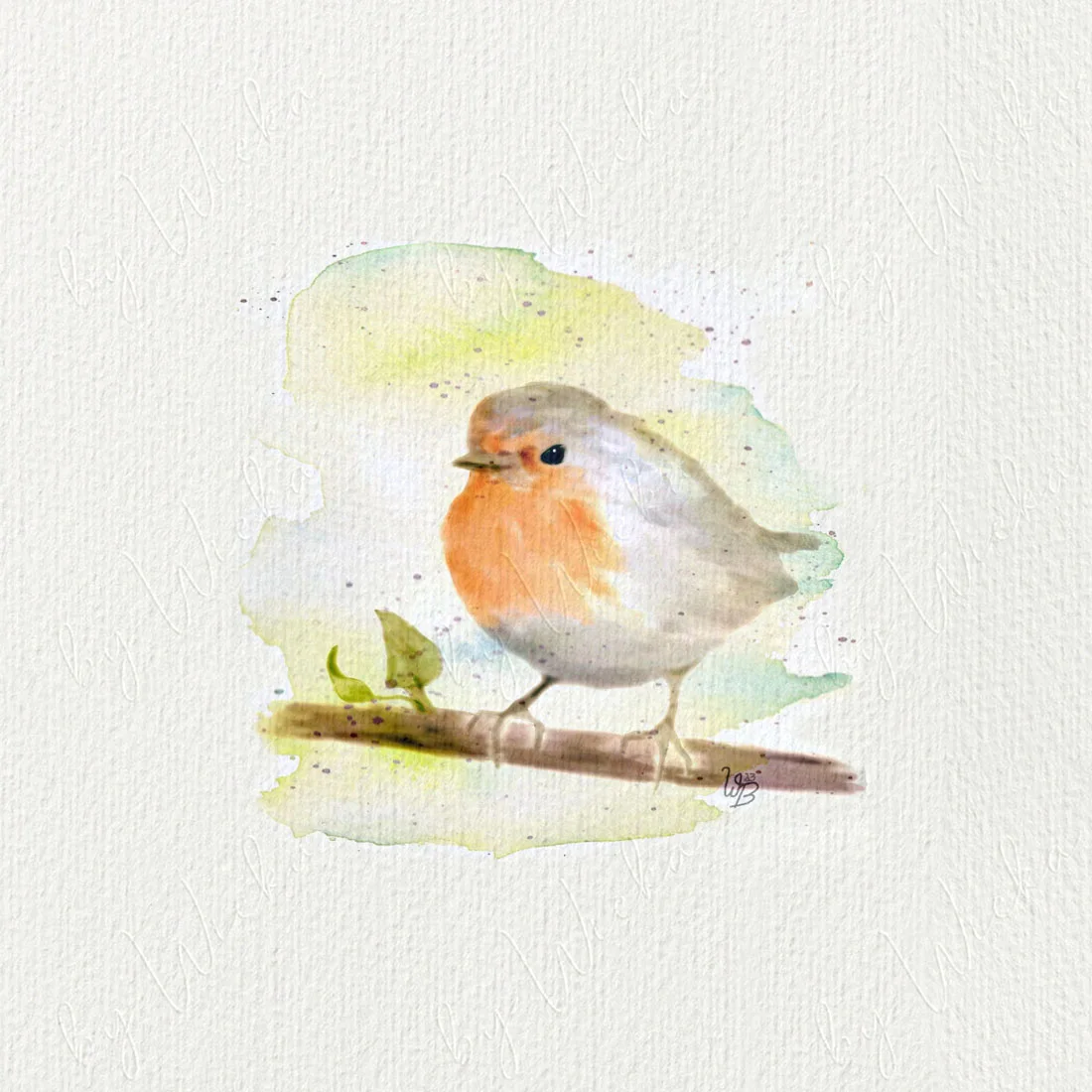 Wintergoldhähnchen - Aquarell, Miniatur Kunstdruck auf Büttenpapier