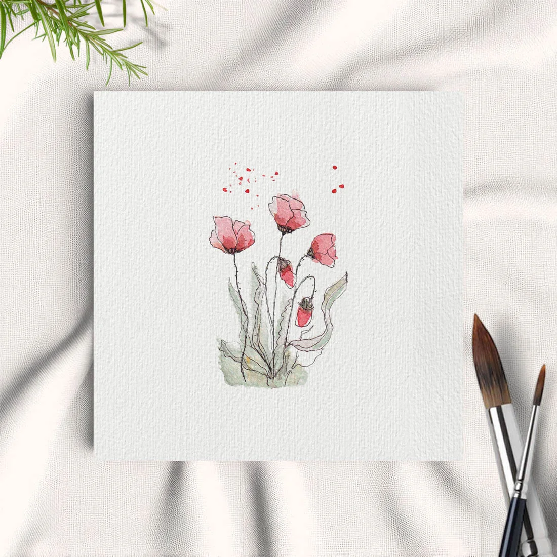 Mini-Aquarell - Kunstdruck im minimalistischen Stil Sommerblumen – Die Minibilder sind perfekt als Geschenk oder zum Selbstbehalten für Zuhause und Büro