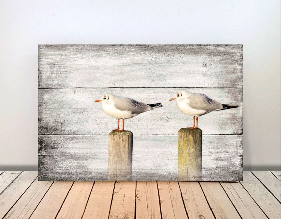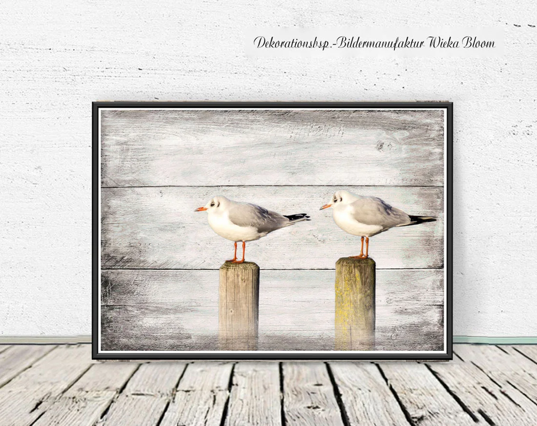 Möwen, Maritimes Wandbild im Shabby-Chic Landhausstil