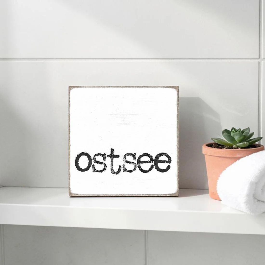 Maritimer Holzblock Leuchtturm, Holzschild mit Spruch im Shabby Chic